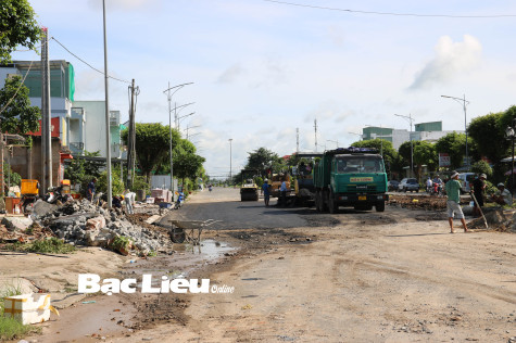 Trưa 12/7, đơn vị thi công vẫn đang tiếp tục thi công, láng nhựa tuyến đường Võ Văn Kiệt (khóm 5, Phường 1, TP Bạc Liêu), đoạn trước nhà hộ ông Đỗ Thành Hưng sau khi gia đình ông Hưng tự nguyện tháo dỡ, di dời các công trình, vật dụng lấn chiếm, bàn giao mặt bằng để địa phương tiếp tục thực hiện Dự án đầu tư xây dựng đường Trung tâm khu hành chính tỉnh (đường Hùng Vương, nay là đường Võ Văn Kiệt).