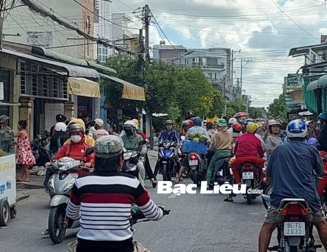 Một điểm kẹt xe do nhiều người hiếu kỳ xem và tham gia giật giàn trên địa bàn Phường 1 (TP. Bạc Liêu).