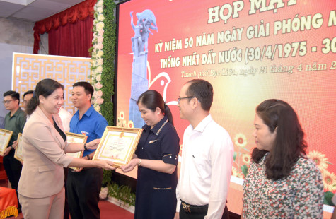 Dịp này, thành phố đã tặng gần 60 phần quà cho các Mẹ Việt Nam anh hùng, Anh hùng Lực lượng vũ trang, các lão thành cách mạng, nhân chứng lịch sử; UBND thành phố cũng đã khen thương cho 16 tập thể có thành tích xuất sắc đóng góp cho sự phát triển của địa phương sau 50 năm giải phóng miền Nam, thống nhất đất nước.
