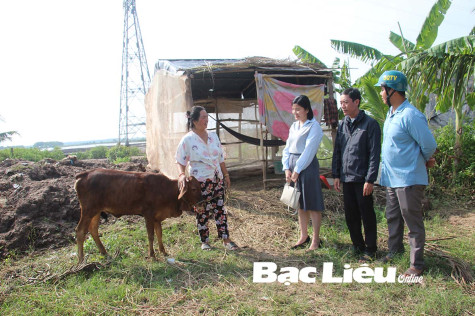 Hộ bà Sương Thị Thu (ấp Biển Đông B, xã Vĩnh Trạch Đông, TP. Bạc Liêu) được hỗ trợ bò giống. Ảnh: N.Q