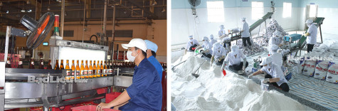 Dây chuyền sản xuất bia và đóng gói muối tại TP. Bạc Liêu. Ảnh: T.A