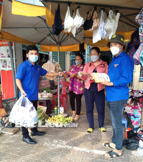 Đoàn viên - thanh niên tuyên truyền xây dựng nếp sống văn minh đô thị trên địa bàn TP. Bạc Liêu. Ảnh: Tú Anh
