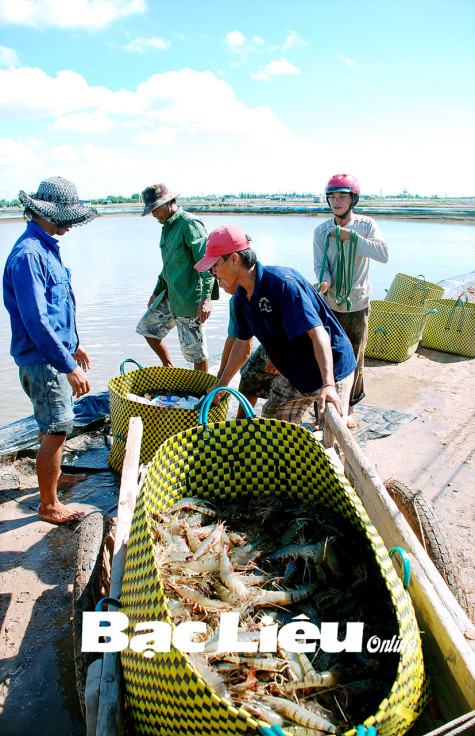 Nông dân TP. Bạc Liêu thu hoạch tôm công nghiệp. Ảnh: L.D
