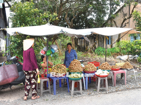 Một điểm bán trái thanh nhãn phục vụ khách du lịch ở xã Hiệp Thành (TP. Bạc Liêu). Ảnh: K.T