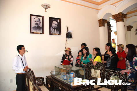Du khách tham quan nhà và nghe giới thiệu về Công tử Bạc Liêu (ảnh chụp trước khi xảy ra dịch COVID-19). Ảnh: K.T