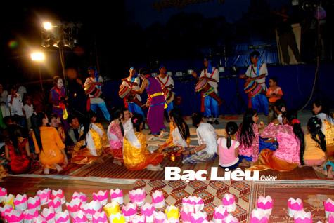 Đồng bào Khmer vui lễ cúng trăng ở chùa Xiêm Cán (TP. Bạc Liêu).