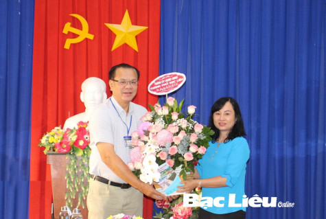 Phó Chủ tịch UBND TP. Bạc Liêu - Đỗ Ái Lam tặng hoa chúc mừng Sở Y tế. Ảnh: H.T