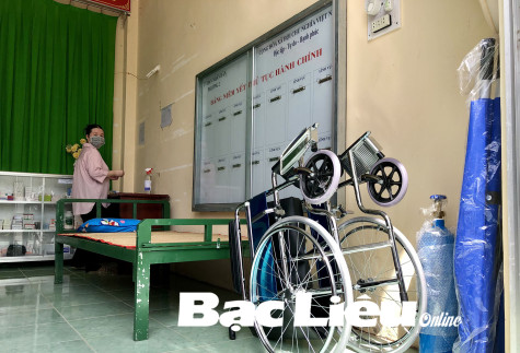 Các trạm y tế lưu động ở các phường, xã thuộc TP. Bạc Liêu được trang bị nhiều thiết bị, vật tư y tế, trong đó có bình oxy (ảnh chụp tại Trạm y tế lưu động số 1, Phường 2). Ảnh: N.Q