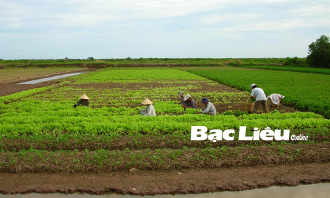 Nông dân xã Hiệp Thành (TP. Bạc Liêu) thu hoạch rau màu.