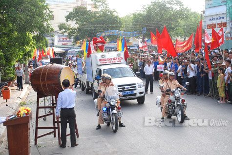 UBND TP. Bạc Liêu phát lệnh ra quân tuyên truyền Tháng ATGT trước khi xảy ra dịch COVID-19. Ảnh: K.T