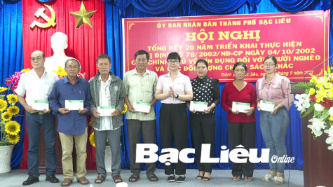 Ngày 7/9, UBND TP. Bạc Liêu tổ chức hội nghị tổng kết 20 năm triển khai chính sách tín dụng ưu đãi đối với hộ nghèo và các đối tượng chính sách khác theo Nghị định 78 của Thủ tướng Chính phủ.