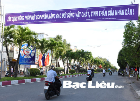 Băng-rôn tuyên truyền xây dựng nông thôn mới trên địa bàn TP. Bạc Liêu.