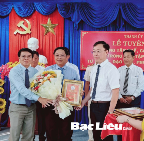 Ban Thường vụ Thành ủy TP. Bạc Liêu tuyên dương cán bộ, đảng viên điển hình tiêu biểu trong học và làm theo Bác. Ảnh: T.T