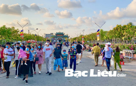 Du khách tham quan  tại khu Quán âm Phật đài (phường Nhà Mát, TP. Bạc Liêu) vào đầu năm 2021 (trước khi bùng phát dịch bệnh).