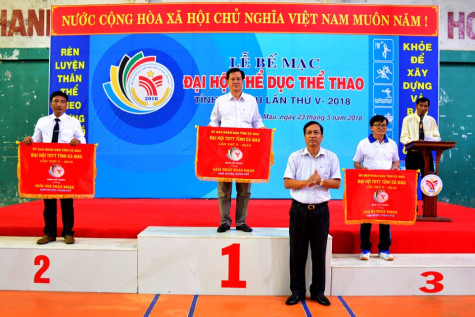 (CMO) Chiều nay, 23/5, Đại hội Thể dục Thể thao tỉnh Cà Mau lần V năm 2018 đã khép lại với giải Nhất toàn đoàn khối địa phương thuộc về đơn vị TP. Cà Mau với tổng số 42 HCV, giải Nhì và Ba lần lượt thuộc về huyện Cái Nước (23 HCV), huyện Đầm Dơi (21 HCV).