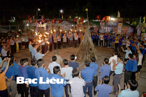 Các trại sinh tham gia đốt lửa trại tại Trại huấn luyện nghiệp vụ công tác Đội. Ảnh: Trung Tín