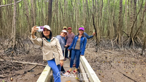 | Ðoàn du khách đến từ Long An trải nghiệm du lịch xuyên rừng và chụp ảnh lưu niệm cùng nhau. |