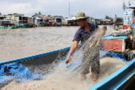 | Chị Cao Hằng Ni (ấp Kinh Đào Đông, xã Đất Mũi) chắt mót từng con tôm, con cá trong mùa biển động. |
