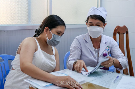 | Thai phụ đến khám tại Bệnh viện Ða khoa Trần Văn Thời được tư vấn về thực hành nuôi con bằng sữa mẹ. |