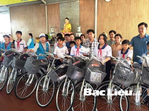 Ngày 26/8, Ban từ thiện Phật giáo TP. Bạc Liêu tổ chức trao 100 suất quà (300.000 đồng/suất) cho người khuyết tật địa bàn TP. Bạc Liêu. Đồng thời tặng 10 chiếc đạp và dụng cụ học tập cho các em học sinh nghèo hiếu học ở 2 điểm trường: THCS Lê Thị Cẩm Lệ và THCS Hiệp Thành (TP. Bạc Liêu) - ảnh. Tổng trị giá các phần quà, xe đạp, dụng cụ học tập là 53 triệu đồng, do Ban từ thiện Phật giáo TP. Bạc Liêu vận động ông Huỳnh Quốc Doanh (TP. Hồ Chí Minh) tài trợ.