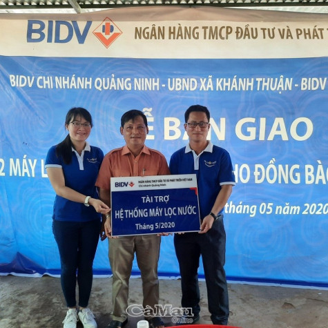 (CMO) Sáng ngày 12/5, BIDV Chi nhánh Cà Mau tổ chức lễ bàn giao 02 máy lọc nước cho người dân ấp 19, xã Khánh Thuận, huyện U Minh.