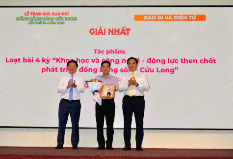 Hai tác phẩm đoạt giải Nhất gồm: Loại hình báo in - báo điện tử: Loạt bài 4 kỳ “Khoa học và công nghệ - động lực then chốt phát triển Đồng bằng sông Cửu Long” của nhà báo Nguyễn Quốc (Báo Bạc Liêu). Loại hình phát thanh - truyền hình: Loạt ký sự truyền hình 5 kỳ “Chín cửa sông rồng” của nhóm tác giả Nguyễn Thị Cẩm Nhung, Nguyễn Minh Cường, Trần Tuấn Tú và Bùi Tấn Vủ (Báo - Đài Phát thanh - Truyền hình Vĩnh Long).
