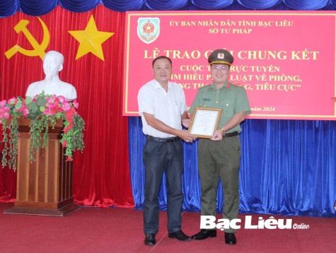 Ngày 25/6, Sở Tư pháp Bạc Liêu tổ chức trao giải chung kết cuộc thi “Tìm hiểu pháp luật về phòng, chống tham nhũng, tiêu cực”.