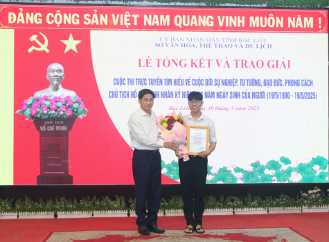 (BL-NQ) Chiều 30/5, Sở VH-TT&DL Bạc Liêu tổng kết và trao giải Cuộc thi trực tuyến tìm hiểu về cuộc đời, sự nghiệp, tư tưởng, đạo đức, phong cách Chủ tịch Hồ Chí Minh.