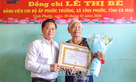 Hướng tới kỷ niệm 96 năm Ngày thành lập Đảng Cộng sản Việt Nam (3/2/1930-3/2/2026), sáng 30/1, đồng chí Bùi Tấn Bảy, Uỷ viên Ban Thường vụ Tỉnh uỷ, Phó Chủ tịch HĐND tỉnh Cà Mau, đến trao Huy hiệu 65 năm tuổi Đảng cho đảng viên lão thành tại xã Vĩnh Phước.