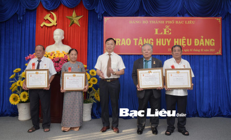 Sáng 1/2, Ban Thường vụ Thành ủy TP. Bạc Liêu đã tổ chức Lễ trao Huy hiệu Đảng cho 55 đảng viên cao niên thuộc Đảng bộ thành phố. Dự lễ có các đồng chí trong Ban Thường vụ Thành ủy; lãnh đạo ban, ngành, đoàn thể. Đây là dịp trao Huy hiệu Đảng nhân kỷ niệm Ngày thành lập Đảng Cộng sản Việt Nam (3/2).