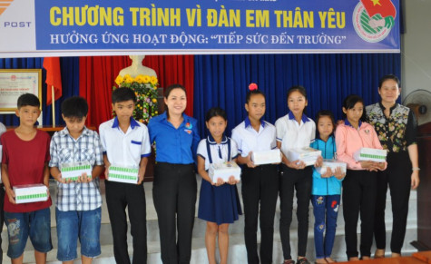 Chị Nguyễn Hoàng Ngọc Mỹ, Bí thư Đoàn cơ sở Bưu điện Cà Mau chia sẻ, nhiều năm qua, đơn vị vận động các ban, ngành, đoàn thể cùng các mạnh thường quân thực hiện nhiều hoạt động tiếp sức các em học sinh vùng sâu, vùng xa đến trường.