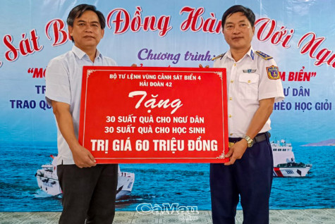 Tại đây, Hải đoàn 42 tổ chức các hoạt động tuyên truyền về pháp luật cảnh sát biển, các văn bản của Đảng, Nhà nước về biển đảo; tuyên truyền chống khai thác IUU cho 120 ngư dân; kết hợp tặng 4.000 lá cờ Tổ quốc, 1.000 ảnh Bác Hồ cho ngư dân; tặng 30 phần quà cho các hộ ngư dân có hoàn cảnh khó khăn, gia đình chính sách, 30 phần quà cho các em học sinh nghèo vượt khó học giỏi (mỗi phần trị giá 1 triệu đồng bao gồm tiền mặt và quà) trên địa bàn thị trấn Rạch Gốc và xã Tân Ân, huyện Ngọc Hiển. Đây là tình cảm, trách nhiệm của cán bộ, chiến sĩ cảnh sát biển luôn đồng hành cùng ngư dân, động viên bà con vươn lên trong cuộc sống, yên tâm vươn khơi bám biển.
