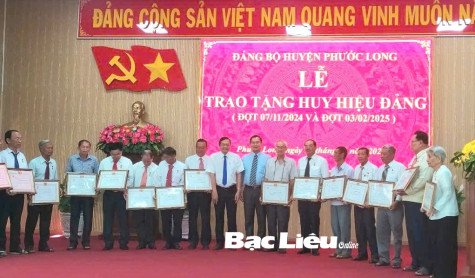 Ngày 16/1, Ban Thường vụ Huyện ủy Phước Long tổ chức Lễ công bố Quyết định của Ban Thường vụ Tỉnh ủy về việc trao tặng Huy hiệu Đảng đợt ngày 7/11/2024 và đợt ngày 3/2/2025 cho 40 đảng viên thuộc Đảng bộ huyện.