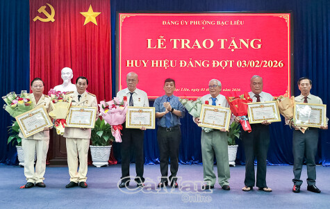 Nhân kỷ niệm 96 năm Ngày thành lập Đảng Cộng sản Việt Nam (3/2/1930 - 3/2/2026), ngày 3/2, nhiều cơ quan, đơn vị trên địa bàn tỉnh Cà Mau trang trọng tổ chức lễ trao tặng Huy hiệu Đảng cho các đảng viên cao niên, ghi nhận quá trình rèn luyện, cống hiến bền bỉ cho sự nghiệp cách mạng của Đảng và dân tộc.