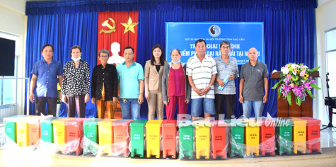 Dịp này, Sở TN-MT đã hỗ trợ 140 bộ thùng phân loại chất thải rắn sinh hoạt tại nguồn cho 140 hộ dân sống trên tuyến đường Hòa Bình.