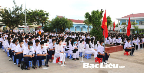 Trường THPT Chuyên Bạc Liêu trong một buổi lễ chào cờ. Ảnh: K.K