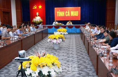 Đại biểu tham dự hội nghị tại điểm cầu Cà Mau