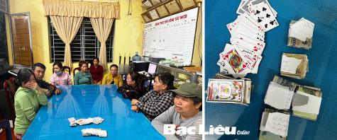 (BL-TH) Chiều 14/3, Đội Cảnh sát điều tra tội phạm hình sự - kinh tế - ma túy (Công an huyện Hồng Dân) nhận được tin báo tại một vườn tạp thuộc ấp Ninh Phước (xã Ninh Hòa) có nhiều đối tượng đang tập trung đánh bài ăn thua bằng tiền. Qua xác minh nhanh, lực lượng Công an đã ập vào bắt quả tang nhiều đối tượng đang đánh bài ăn tiền. Công an huyện Hồng Dân đã lập biên bản vi phạm hành chính 9 đối tượng, trong đó có 7 phụ nữ; tạm giữ tang vật là 1 bộ bài tây và số tiền gần 9 triệu đồng.