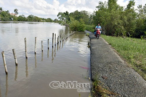 (CMO) Kể từ tháng 10, đều đặn mỗi tháng triều cường các tuyến sông trên địa bàn huyện Cái Nước xuất hiện 2 lần, không chỉ làm cho hệ thống lộ giao thông nông thôn (GTNT) đứng trước nguy cơ bị hư hỏng, xuống cấp do nước sông dâng cao, mà còn gây bất lợi cho người dân đi lại và các em học sinh đến trường.
