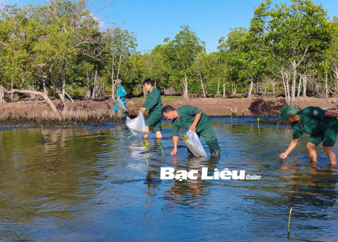 Sáng 25/8, Ban Quản lý rừng đặc dụng - phòng hộ ven biển tỉnh Bạc Liêu (Sở NN&PTNT) tổ chức ra quân trồng rừng năm 2023 tại ấp Vĩnh Mới (xã Vĩnh Thịnh, huyện Hòa Bình) - ảnh.