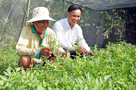 Chỉ tay qua 2 hướng khác nhau, ông Cát phân luồng: “Hồi trước tôi trồng hết thảy 2.000 m2, nhiều loại nhưng chủ yếu là rau cần, ngò om, húng lủi, rau thơm..., giờ phía gần nhà tôi dựng nhà lưới 350 m2 để trồng rau, tháng nắng mà rau đẹp, lá lớn, xanh mướt”.