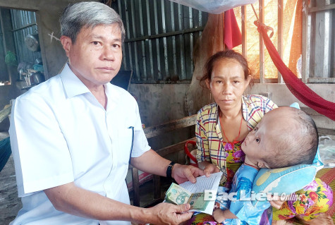 Sáng ngày 27/4, Đoàn bác sĩ Trung tâm y tế huyện Hòa Bình phối hợp cùng UBND xã Vĩnh Hậu và Trạm y tế xã tổ chức đi thăm, trao tặng tiền hỗ trợ tiền cho 1 trường hợp trẻ bị bệnh não úng thủy ở ấp 14, xã Vĩnh Hậu.