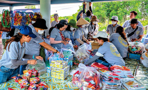 | Ðoàn thiện nguyện mang nhiều phần quà, bánh trung thu, dụng cụ học tập… tặng các em ở cửa biển Cái Cám (xã Tân Hải) và cửa biển Sào Lưới (xã Nguyễn Việt Khái). |