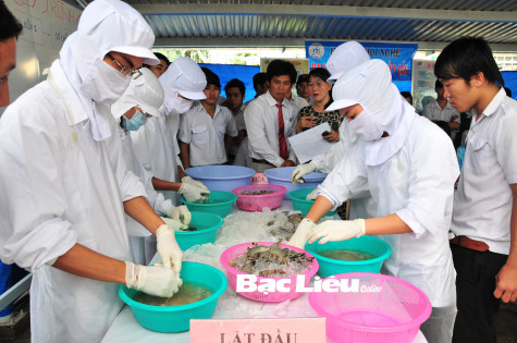 Đào tạo nghề Chế biến thủy sản xuất khẩu tại Trường cao đẳng Kinh tế - Kỹ thuật Bạc Liêu. Ảnh: T.A