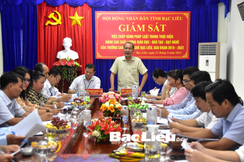 Tiếp tục thực hiện kế hoạch giám sát việc chấp hành pháp luật trong thực hiện nâng cao chất lượng giáo dục - đào tạo - dạy nghề trên địa bàn tỉnh giai đoạn 2018 - 2022, sáng 21/9, Đoàn giám sát HĐND tỉnh do đồng chí Phan Như Nguyện - Ủy viên dự khuyết Ban Chấp hành Trung ương Đảng, Phó Chủ tịch Thường trực HĐND tỉnh làm trưởng đoàn đã có buổi giám sát tại Trường cao đẳng Nghề Bạc Liêu.