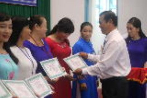 Thầy Nguyễn Hữu Hạnh, Hiệu trưởng trường CĐYT Cà Mau tặng giấy khen cho 6 giáo viên dạy giỏi cấp trường.