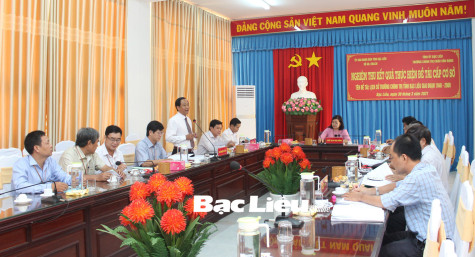Trường Chính trị Châu Văn Đặng cùng Sở GD-KH&CN nghiệm thu đề tài cấp cơ sở “Lịch sử Trường Chính trị tỉnh Bạc Liêu giai đoạn 1948 - 2018”. Ảnh: N.Q