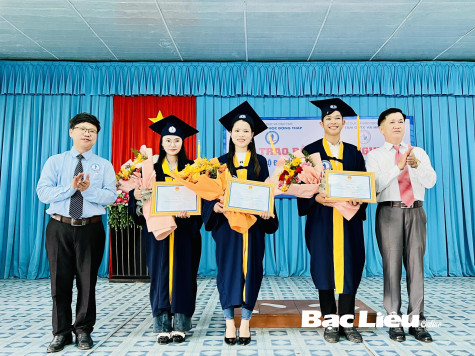 (BL-CK) Sáng 26/10, Trường đại học Đồng Tháp phối hợp với Trung tâm GDTX-HN tỉnh tổ chức trao bằng tốt nghiệp đại học cho các sinh viên là cán bộ, giáo viên đang công tác tại các cơ sở giáo dục của cấp học mầm non và tiểu học trên địa bàn tỉnh Bạc Liêu. Theo đó, có 91 tân cử nhân thuộc 2 chuyên ngành: Giáo dục mầm non và Giáo dục tiểu học đủ điều kiện tốt nghiệp được nhận bằng cử nhân, trình độ đại học. Khóa học diễn ra trong thời gian gần 3 năm với hình thức đào tạo vừa làm vừa học.