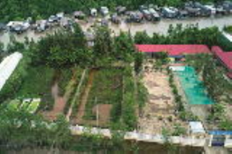 | Sân chơi tại điểm trường Tiểu học Bình Minh 1, xã Trần Hợi rất thấp, chỉ mới đầu mùa mưa đã ngập úng. |