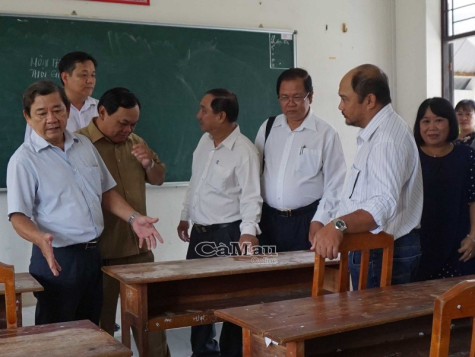 Đoàn giám sát Ban dân tộc HĐND tỉnh kiểm tra bàn, ghế, lớp học tại trường PTDT Nội trú tỉnh Cà Mau. |